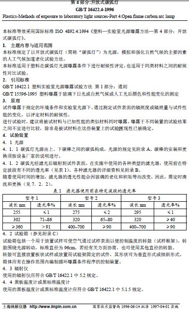 > GB/T 16422.4-1996塑料實驗室氙燈光源曝露老化試驗方法