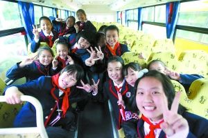 昨日,渝北區(qū)的孩子們坐在新型安全校車?yán)矬w驗時非常激動