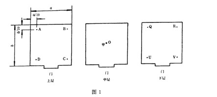 測試點(diǎn)的數(shù)量與工作容積大小的關(guān)系為:a、工作室容積不大于1立方米時,測試點(diǎn)為9個,布放位置如圖1所示;