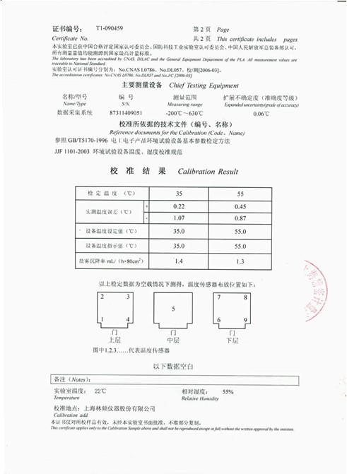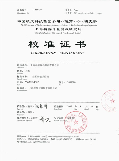> 林頻股份—鹽霧腐蝕試驗箱校準證書
